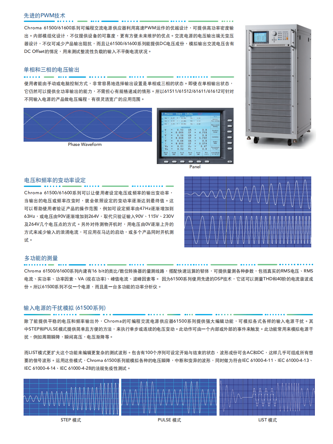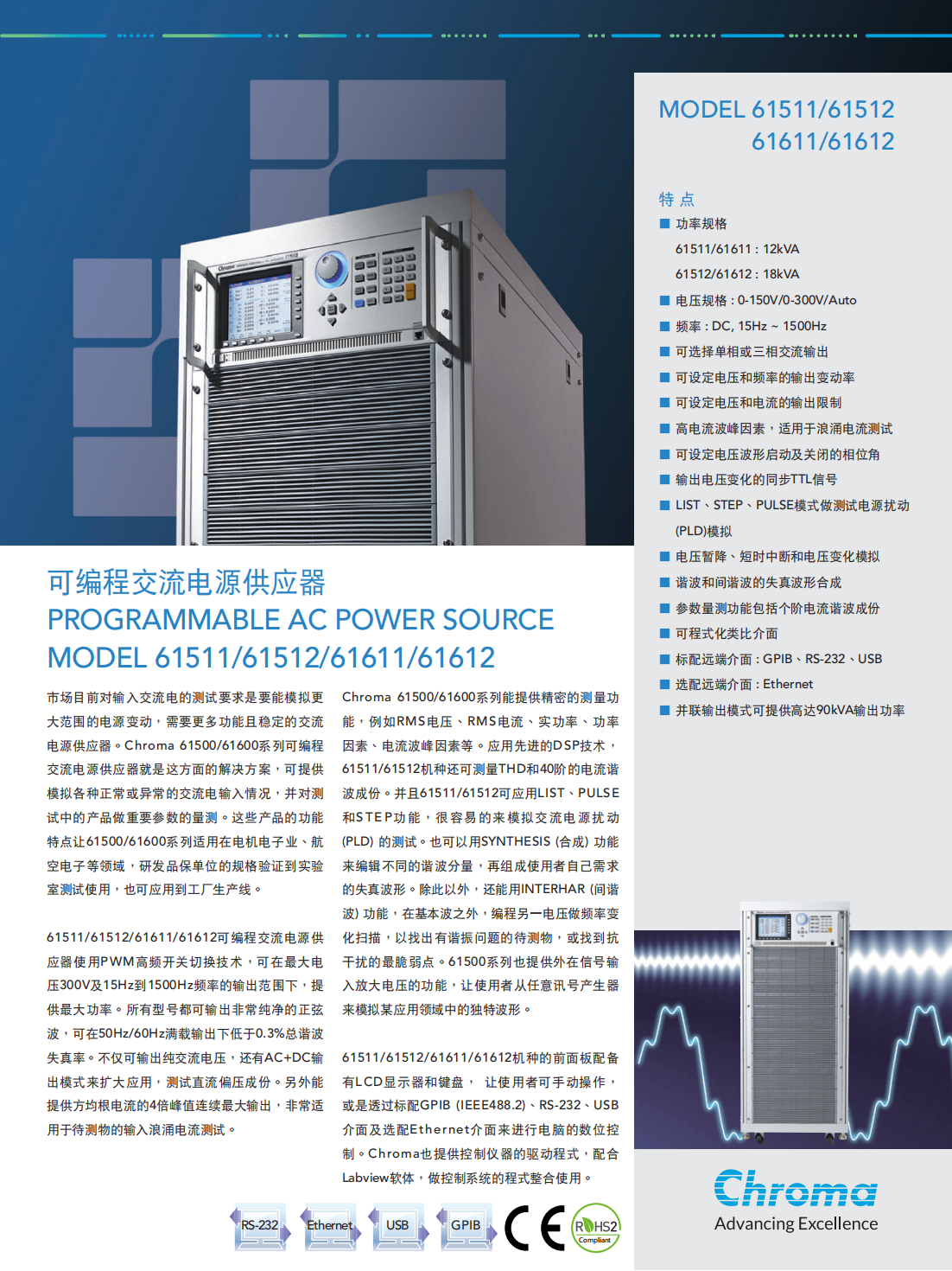 Chroma进阶可编程交流电源MODEL61511/61512/61611/61612