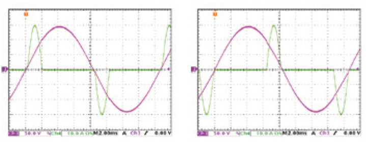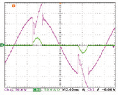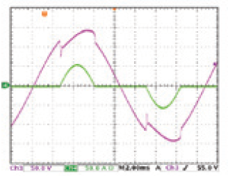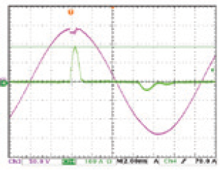 当待测物有较大的输出阻抗时,如发电机,若无自动带宽调整功能时,电流波形会较不稳定,如图8所示。大部分的情况下,负载电流会产生震荡并影响测试结果的准确性。