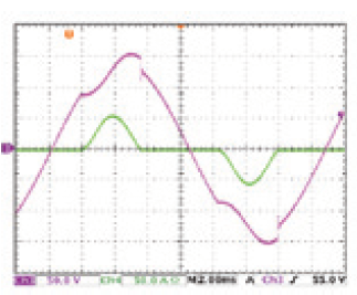 为了模拟浪涌电流(如图6所示),63800系列拥有浪涌电流模式,让用户可设定不同的浪涌电流的起始角度,如此使用者可节省下许多在量测浪涌电流时所需花费的时间。