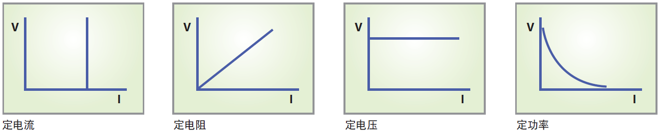 63800 直流负载仿真包括四种负载模式 : 定电流、定电阻、定电压及定功率模式,如下所述。
