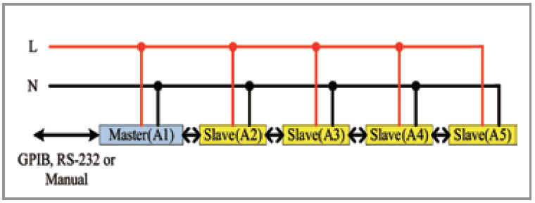 63800系列提供多台并联、三相与并联三相的功能,让用户能够进行更大功率或三相交流电源的测试应用。其中,63800系列的各个不同型号的负载也可互相做并联或三相的搭配,这样可以更灵活、更弹性的使用63800系列交流电子负载,以节省成本。