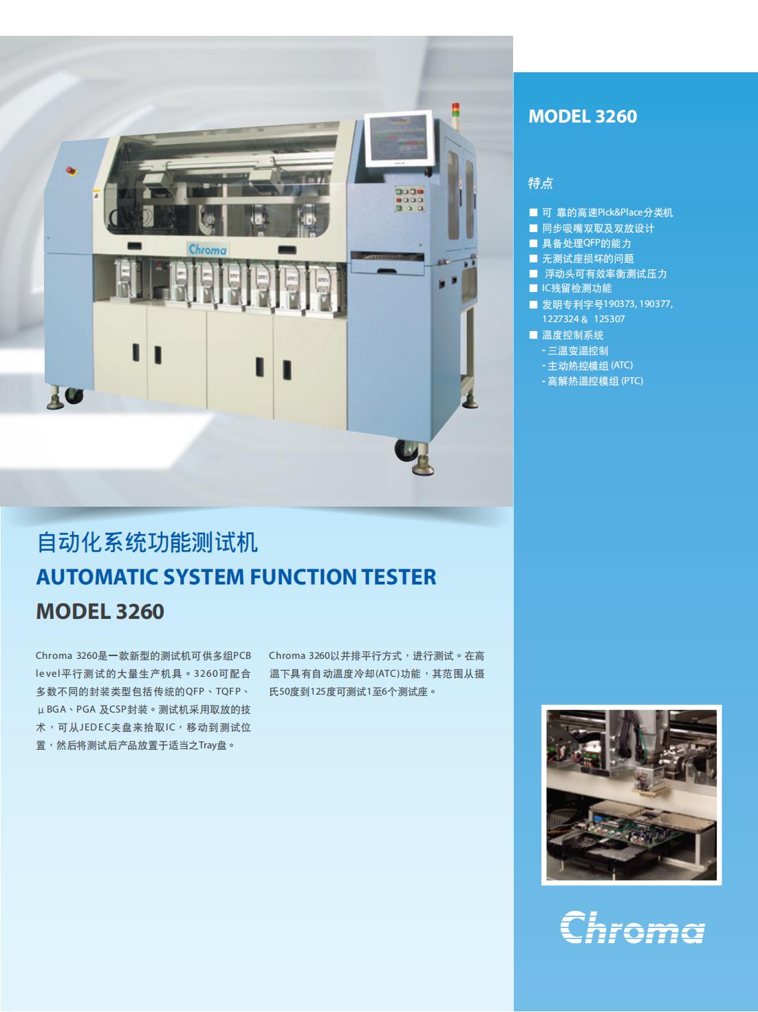 Chroma 3260是一款新型的测试机可供多组PCBlevel平行测试的大量生产机具。